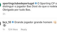 Também Jovane deixou algumas palavras ao seu agora ex-colega: "Foi um prazer jogar contigo Bas. Obrigado por acreditares sempre em mim e me motivares nos tempos mais difíceis. Boa sorte e vais ser sempre uma referência para mim", publicou na mesma rede social.